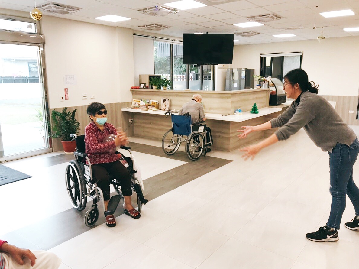 🏐 帶領員控球:活動帶領者站於圓圈中心,一一與阿公阿嬤進行傳接球。