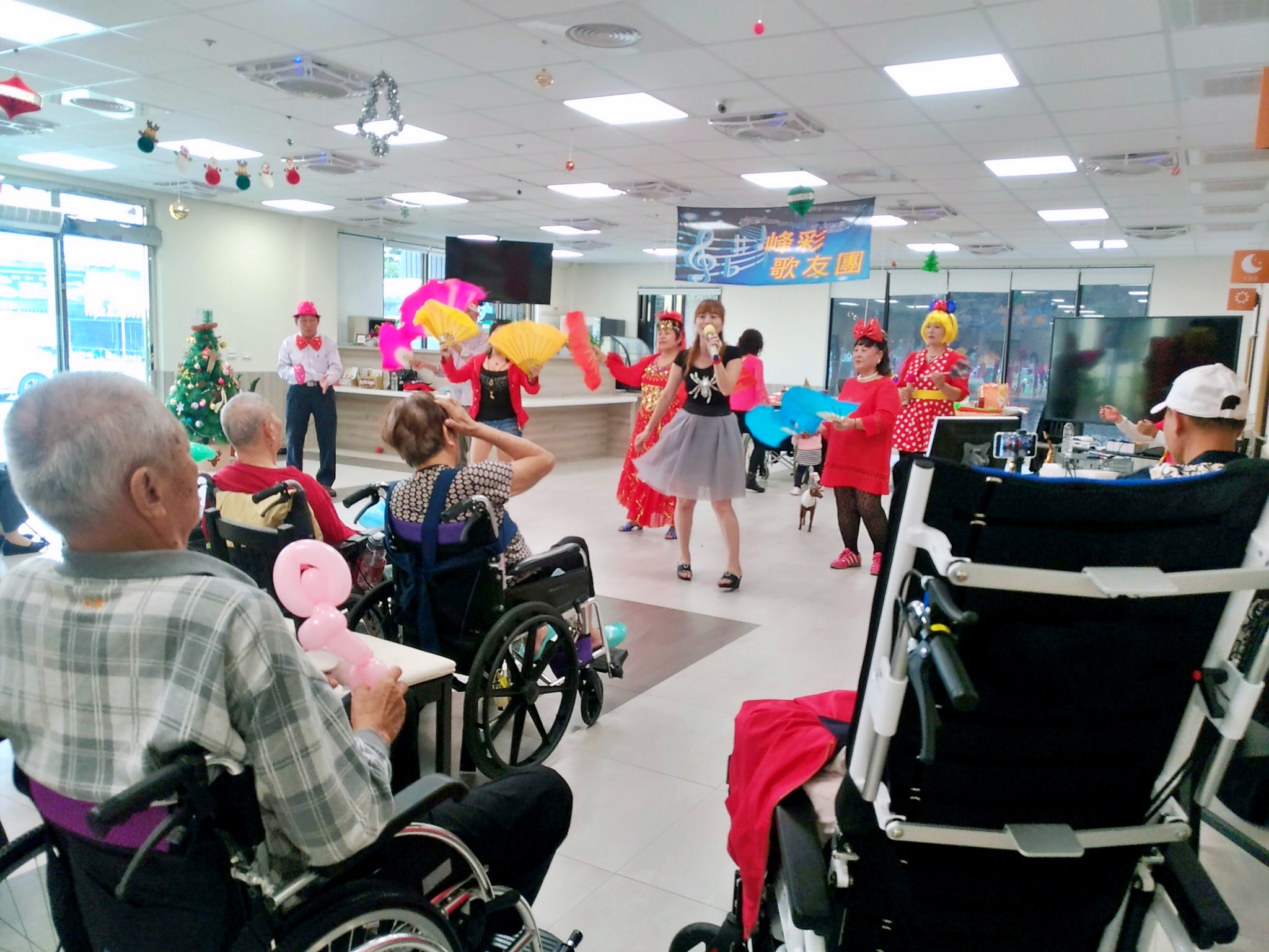 1/12日(六)下午的長宸護家因為峰彩公益歌友團的哥哥姐姐們蒞臨顯得特別熱鬧!團友們精緻的服飾妝容和深厚的演出陣容、堪稱職業水準的的歌廳 LIVE秀,讓表演充滿張力和效果,也把長宸的爺爺奶奶們逗得笑聲不斷。