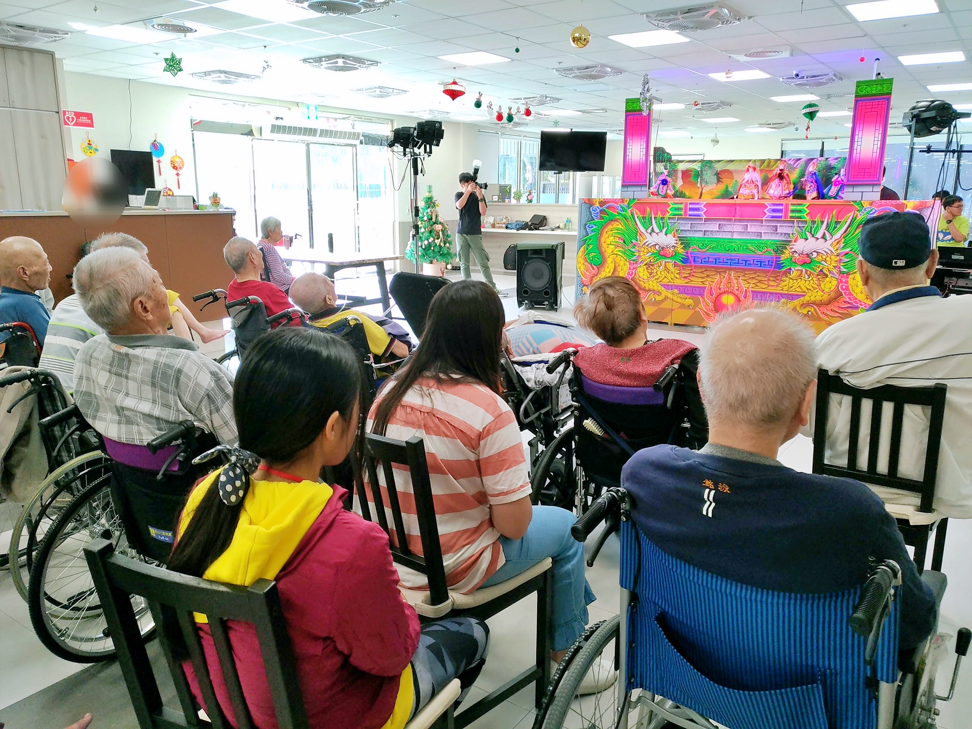 時值學校寒假期間,感謝中正高工的同學們特地犧牲假期、撥冗至長宸護理之家進行公益關懷,為阿公阿嬤們帶來充滿回憶的布袋戲表演。炫目奪彩的舞台及燈光,搭配同學們的精湛熟練的戲偶動作與配音,再再展現出了專業與實力!除了讓阿公阿嬤們『一飽眼福』之外,也讓我們感受到了代代薪火相傳的意念。