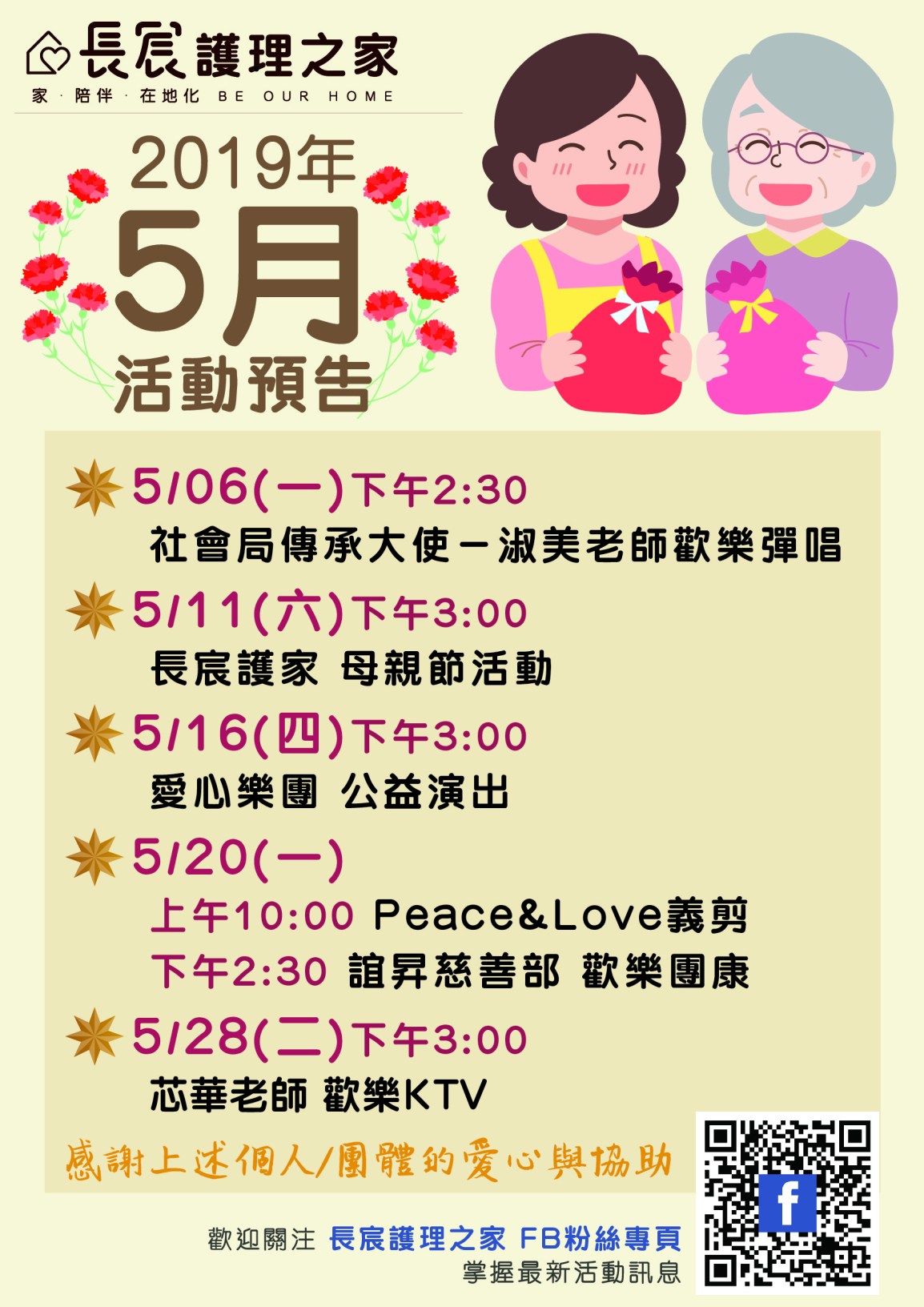 📅【長宸護理之家-5月活動預告】